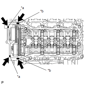 (a) Remove any remaining seal packing material and be careful not to drop any oil on the contact surfaces of the cylinder head, timing chain cover assembly and cylinder head cover sub-assembly.