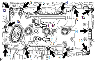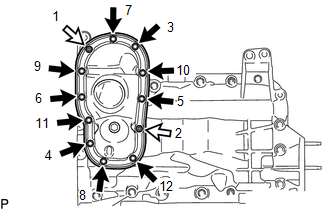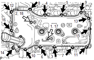 (b) Install the No. 2 oil pan with the 10 bolts and 2 nuts. Tighten the bolts and nuts in the order shown in the illustration.