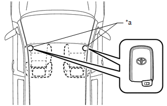 *2: When the electrical key transmitter sub-assembly is in the cabin, the ID code sent as a result of communication between the electrical key transmitter sub-assembly and certification ECU (smart key ECU assembly) and the ID code calculated by the certification ECU (smart key ECU assembly) are compared. If the ID codes match each other, the vehicle recognizes that the electrical key transmitter sub-assembly is in the cabin.